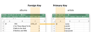 على سبيل المثال ، في الصورة أعلاه ، يعتبر عمود معرف الفنان في جدول الألبومات مفتاحًا خارجيًا للتعرّف في جدول الفنانين.