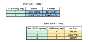 على سبيل المثال ، تريد أن يكون لديك جدول يحتوي على جميع بيانات المستخدم وجدول الأحداث معًا